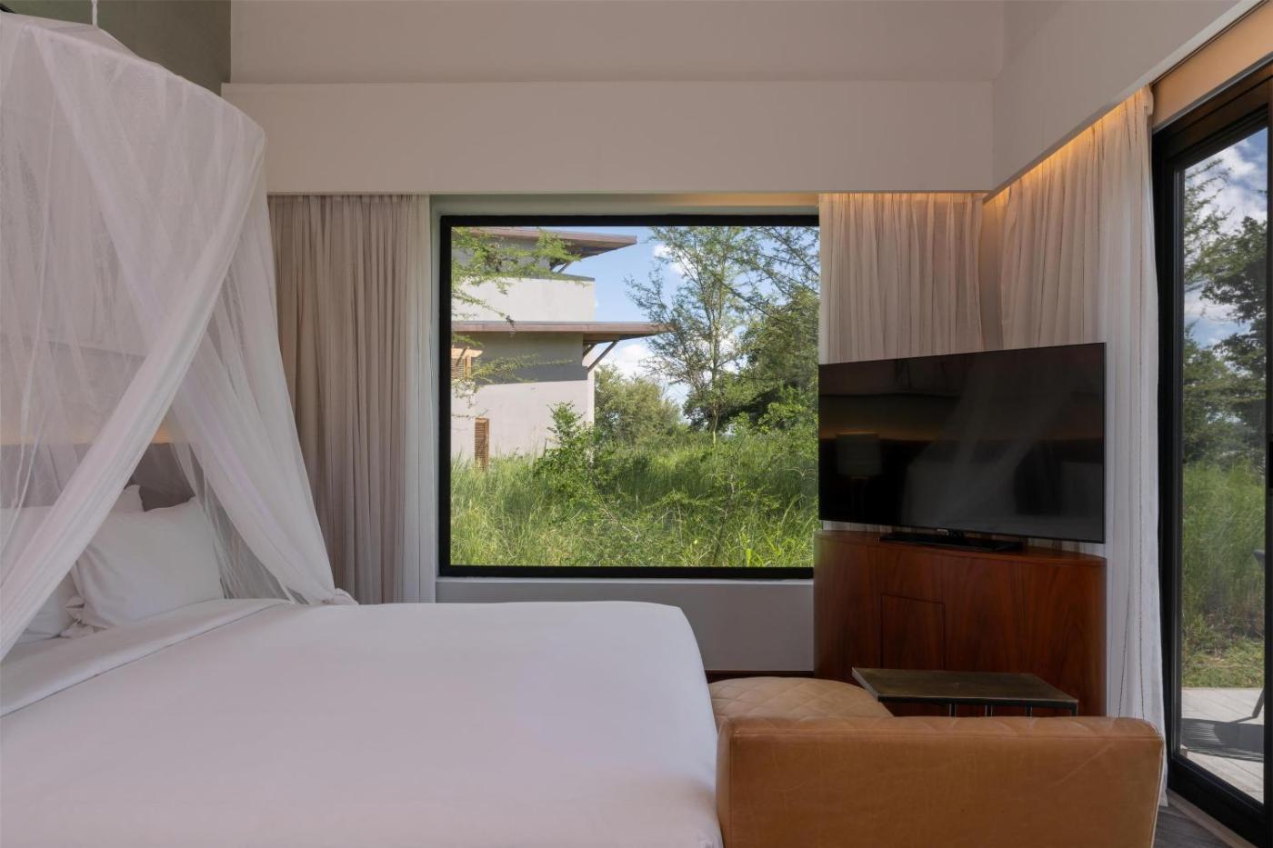 Villa Suite with Zambezi River View and Terrace. Boasting a private entrance, this spacious suite also comes with 1 bedroom, a seating area and 1 bathroom with a bath and a shower. The air-conditioned suite features a flat-screen TV with streaming services, soundproof walls, a minibar, a tea and coffee maker as well as garden views. The unit has 1 bed. ;