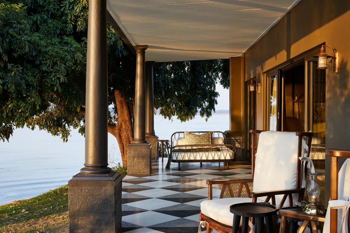 situated on the banks of the Zambezi River. From Lusaka a 20 minute light aircraft flight to the Lower Zambezi, Zambia. Reflecting the